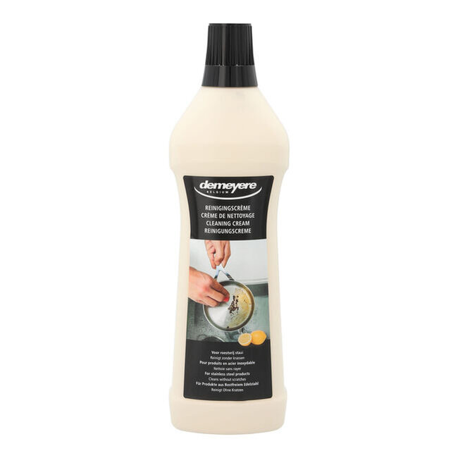 De Demeyere Reinigingscrème is speciaal ontwikkeld voor het veilig en grondig reinigen van roestvrij staal. Deze krachtige maar zachte formule verwijdert hardnekkig vuil, vetresten, verkleuring en lichte aanslag zonder krassen achter te laten. Ideaal voor Demeyere RVS pannen met Silvinox® afwerking, maar ook geschikt voor kookplaten, spoelbakken, chroomwerk en tegels. De crème ontvet effectief en herstelt de natuurlijke glans van het oppervlak. Dankzij de frisse citroengeur is reinigen niet alleen doeltreffend, maar ook aangenaam. Zo blijft jouw RVS kookgerei in topconditie.