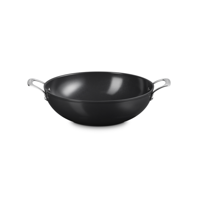De Le Creuset wokpan met keramische anti-aanbaklaag is perfect voor het snel en gezond bereiden van gerechten. Dankzij de diepe vorm en brede bodem is deze wok ideaal voor roerbakken, sauteren en het bereiden van complete maaltijden. Groenten, vlees en vis worden gelijkmatig gegaard en behouden hun smaak en structuur.