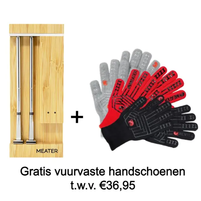 De MEATER Pro Duo is een vlees thermometer en tegelijkertijd een BBQthermometer. Meater meet de kern temperatuur van je vlees en tegelijkertijd de omgeving temperatuur van je BBQ of Pan. Of je nu een sappige steak wilt grillen, mals gebraad uit de pan wilt bereiden of perfect bereide kalkoen wilt serveren, deze compacte thermometer voor vlees garandeert topresultaten. Ontdek de gebruiksvriendelijke kookapp met recepten en optimaliseer je grillervaring met de beste BBQ thermometer op de markt.