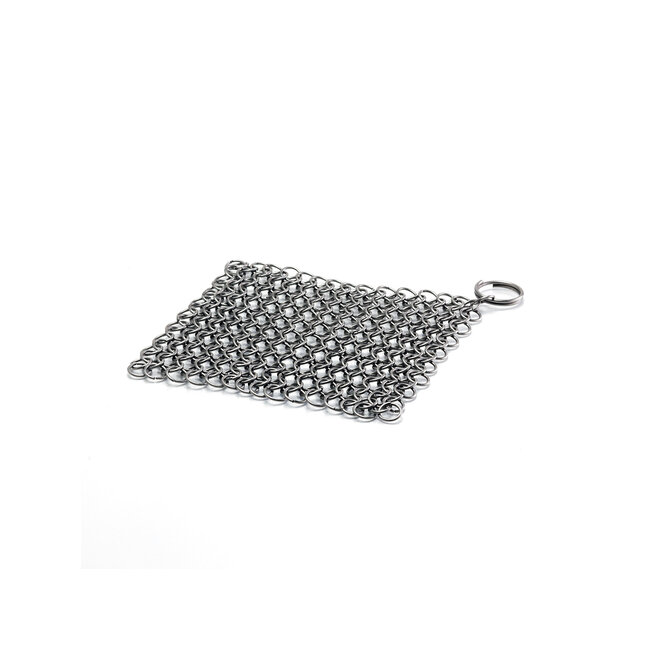 Het scrubmatje is gemaakt van duurzame materialen en heeft een ruw oppervlak dat helpt bij het verwijderen van aangekoekte resten en vuil van het oppervlak van het gietijzeren kookgerei. Het is ontworpen om effectief te zijn bij het reinigen, terwijl het tegelijkertijd het gietijzeren oppervlak niet beschadigt.