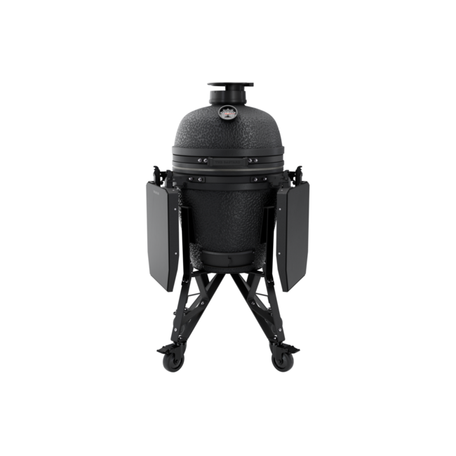 De CORE-serie onderscheidt zich door slimme upgrades ten opzichte van de Urban-lijn. Denk aan de vernieuwde CORE Air Cap, een nauwkeurige dome-thermometer, duurzame materialen geïnspireerd op de PRO-serie en onderhoudsvriendelijke HPL-zijtafels. Het zware cordieriet keramiek zorgt voor uitstekende isolatie en een stabiel temperatuurbereik, waardoor je moeiteloos kunt grillen, roken, bakken en slowcooken. De matte Graphite afwerking geeft deze kamado een strakke, moderne uitstraling.