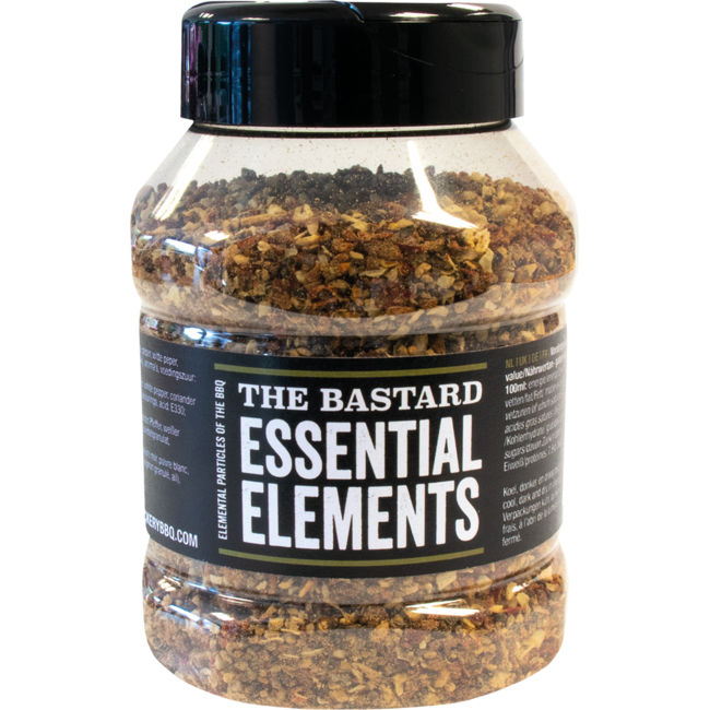 De Essential Elements Rub van The Bastard is een veelzijdige en krachtige BBQ rub, ontworpen voor grillmasters die durven te experimenteren. Met een uitgebalanceerde mix van zwarte en witte peper, korianderzaad, selderij en een mix van knoflook, ui en andere gedroogde groenten, tilt deze rub je steak, zalm, kip of groenten naar een hoger niveau. Het is een ideale keuze voor iedereen die een diepere smaak en een subtiele kruidige kick aan zijn gerechten wil toevoegen.